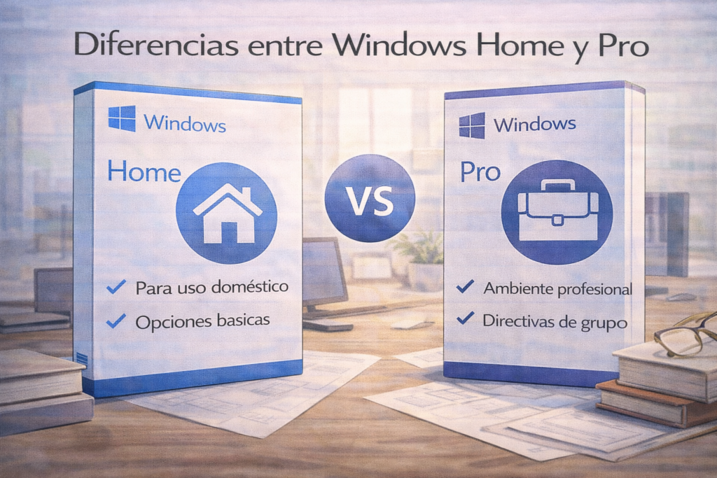 - Windows Home: pensado para uso doméstico, opciones limitadas de control avanzado.